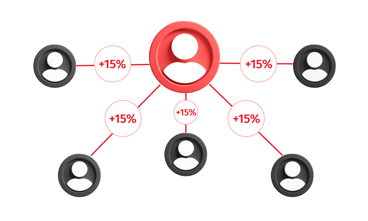 Jika klien Anda juga menjadi mitra FIBO Group, Anda akan mendapatkan tambahan 15% dari jumlah imbalan mereka